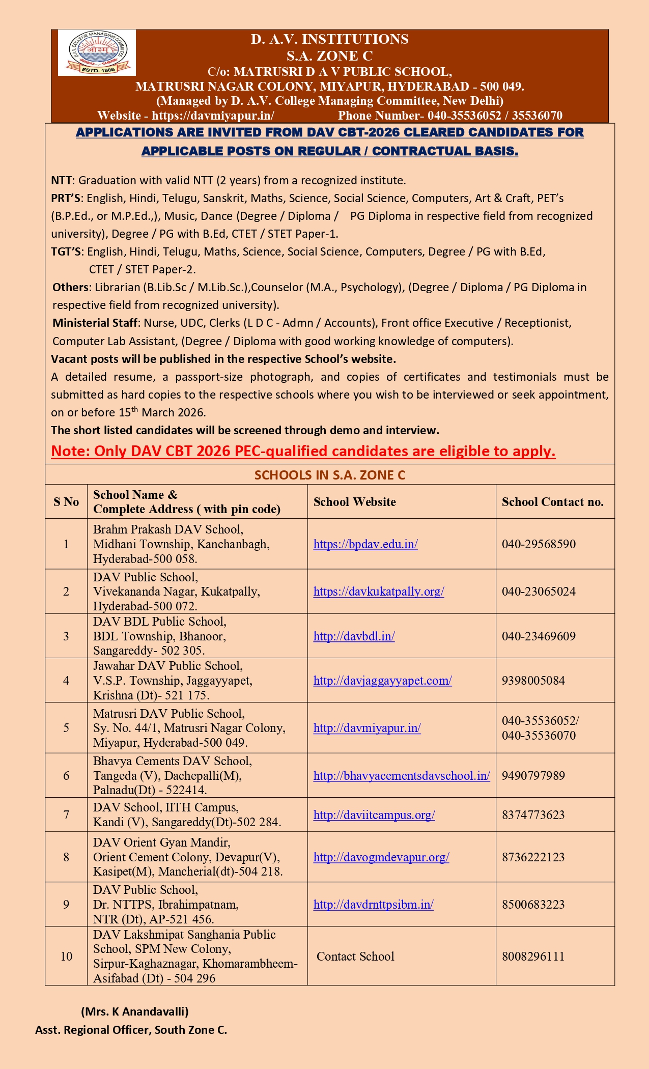 Welcome to D.A.V. Public School, Kukatpally, Hyderabad. This school under the direct management of D.A.V. College Managing Committee, New Delhi stands nestled in the beautiful environs of Vivekananda Nagar residential colony. This educational institution.